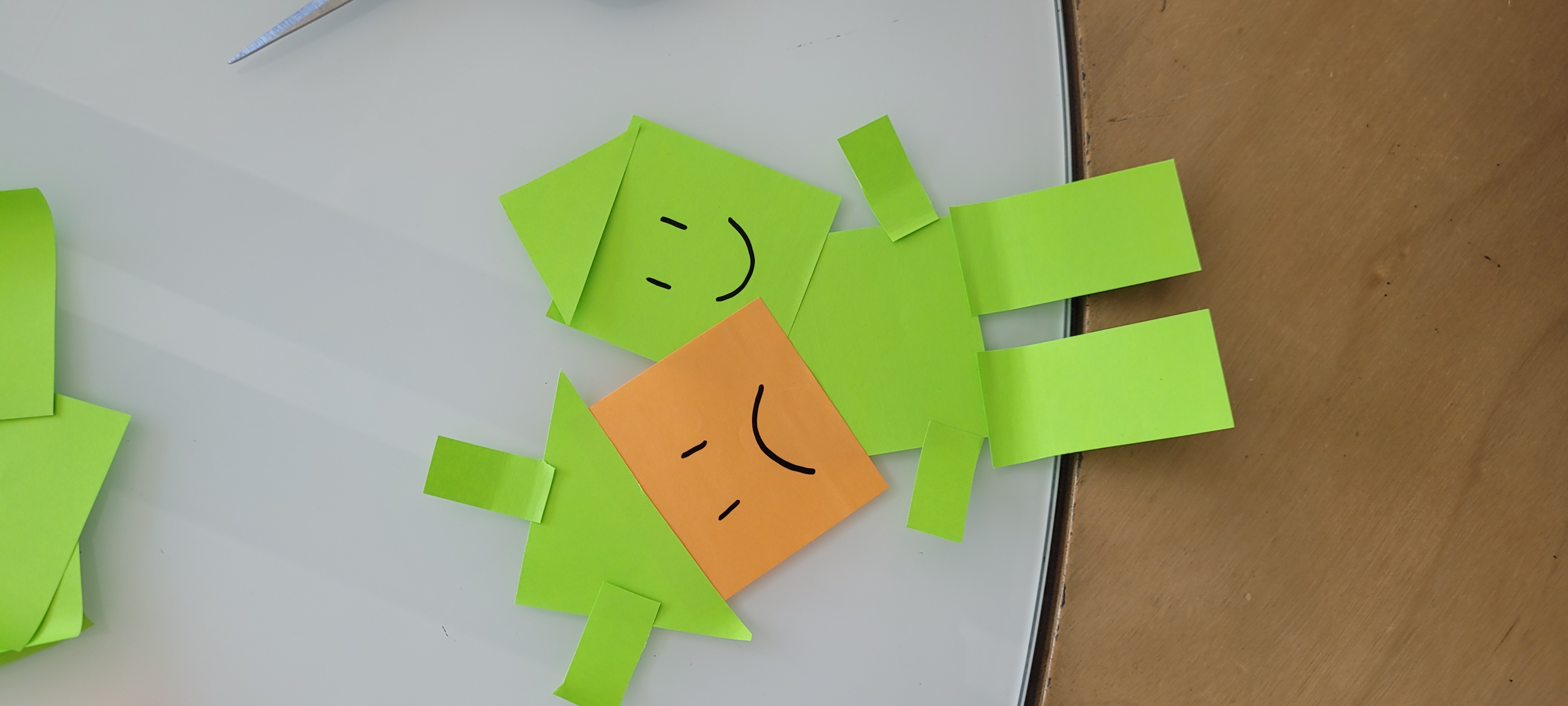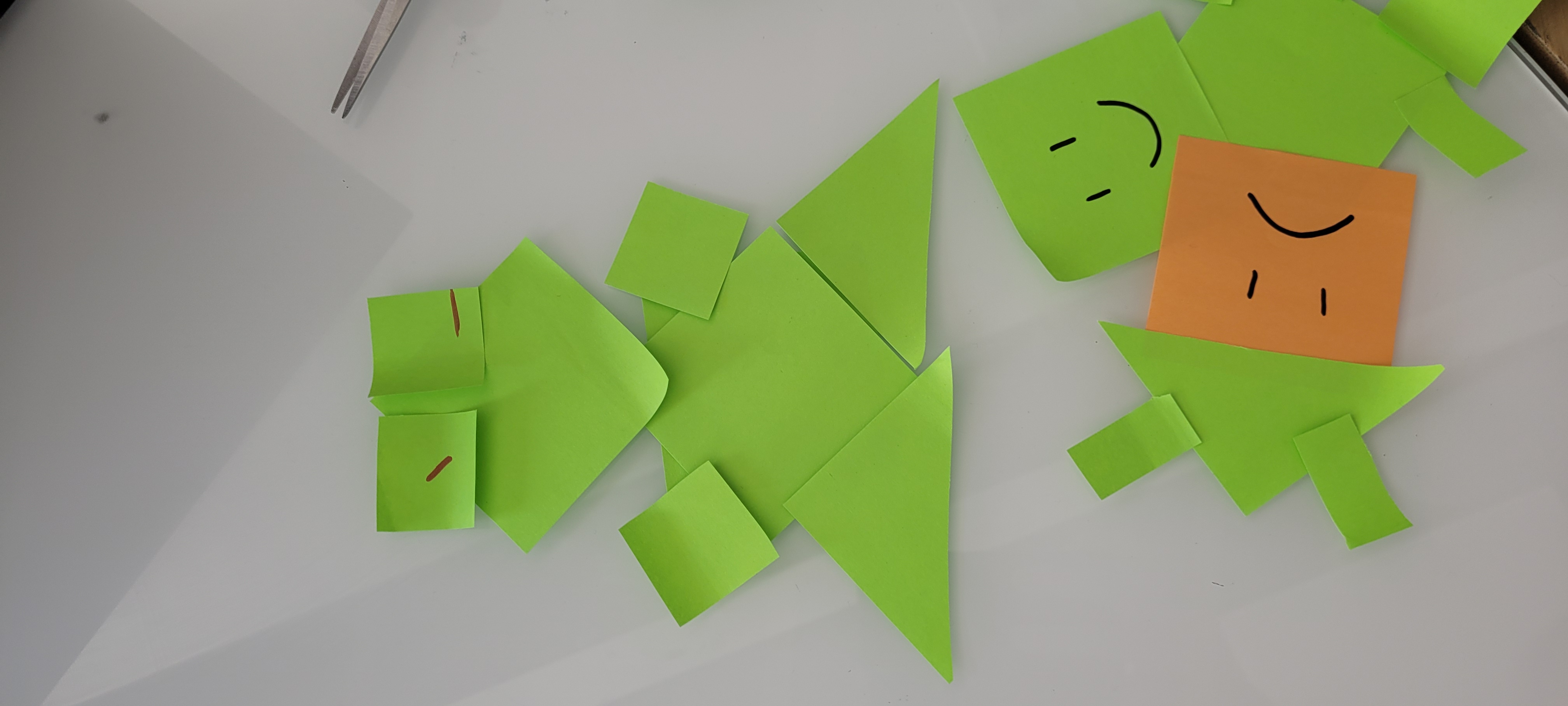 Eventually, in the spirit of simplicity, the final tool consists of a lot of different basic paper shapes that designers can combine into any form they want. The use of paper makes it easy to set up and move around and it can be easily modified by drawings of the designers. The setup can be seen below in Figure 4.1. This tool allows for full creative freedom and allows designers to be inspired by simplicity. A similar approach has been done by Voges et al. [5A] who created a creative toolkit for the embodiment of Social Robots. Their kit does contain more robotic shapes, but they also reflect that using those limits the amount of novel ideas. Voges et al. found that the use of the kit allows for a creative approach and has a low threshold even for those without a Social Robot background.