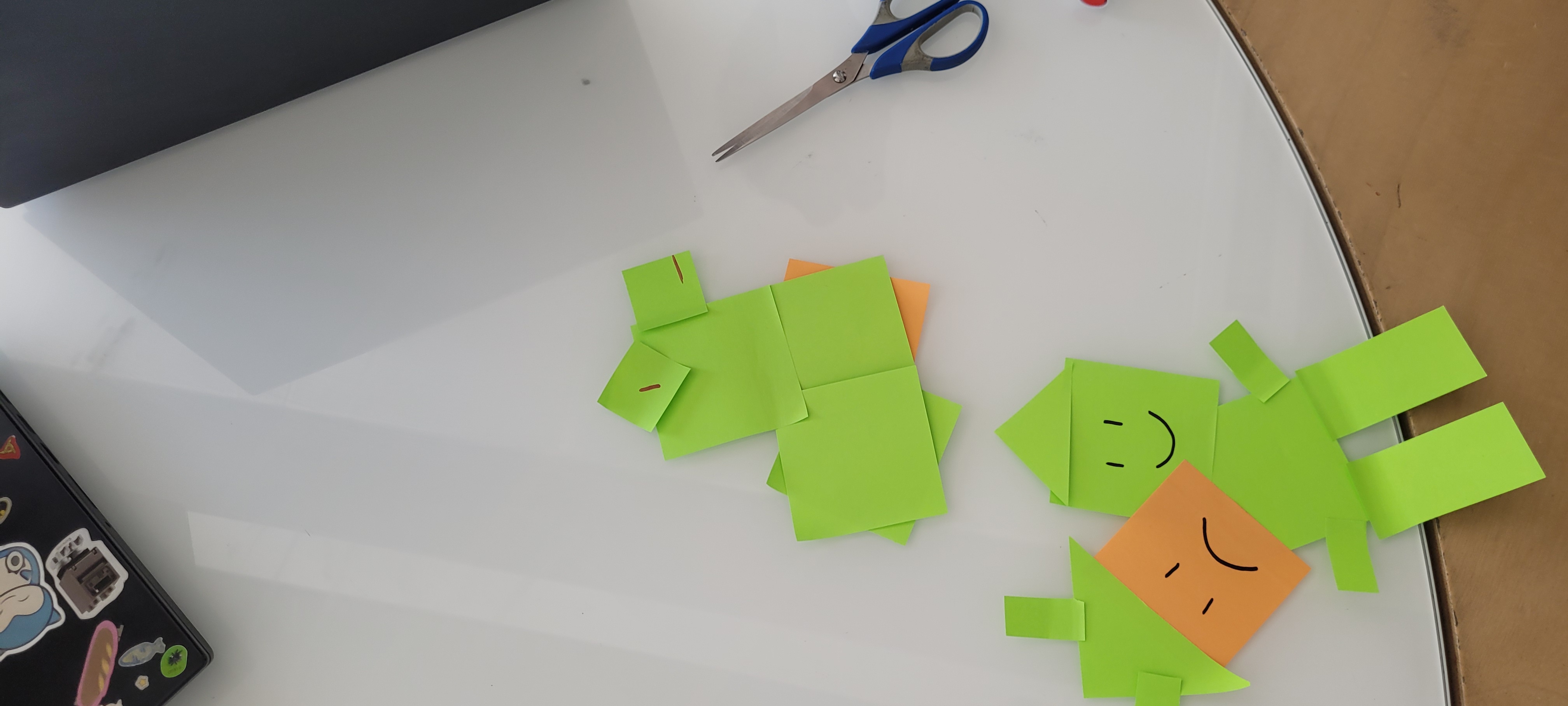 We tested out the tool ourselves, and were quickly amazed by the level of diversity in the outcomes of our personal robot embodiments. The different results can be found below in Figures 4.2 till 4.10. As can be seen, all participants took a different approach even with the same limited amount of shapes available. We took the liberty to add drawings to the designs, to make them more personal and more clear and to extend beyond the basic shapes. This is also seen in the results from Voges et al. [2] where half the designs were complemented with personal elements. This shows that the simplicity of the design allows for more interpretations and extends the creative horizon. Sanoubari et al. [3] conducted research where they let children design their own robot and bring it to life with their own story. The robots created were very Lo-Fi due to use of leftover material and cardboard, but by adding on their own drawn on faces and decorations, the robots became very personal and lively. This is what we also aimed to achieve.